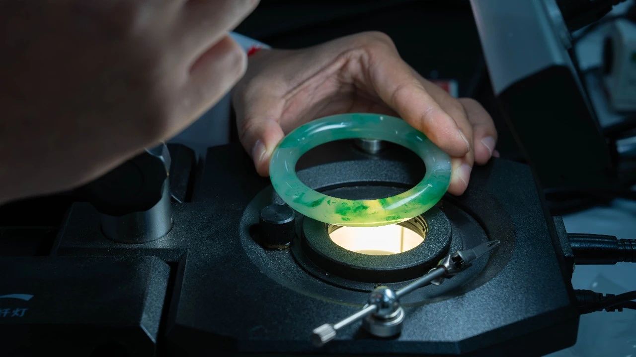 如何让这些“地球记忆”被现代科技读懂?云检瑞丽实验室的检测师严格遵循《非洲翠 鉴定与分类》团体标准,用红外光谱仪捕捉显晶质石英的特征峰信号,用显微成像系统观察晶体结构,放大观察矿物包体。这些独特的“矿物基因”经科学解析,共同构成了非洲翠独一无二的“身份密码”。